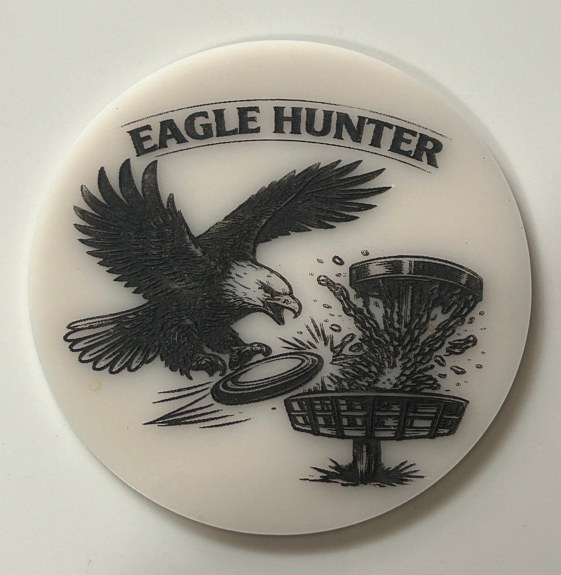 This bold design features an aggressive disc golf basket mid-strike, capturing the moment every player knows matters most. Built for players who understand that scoring happens inside the circle.